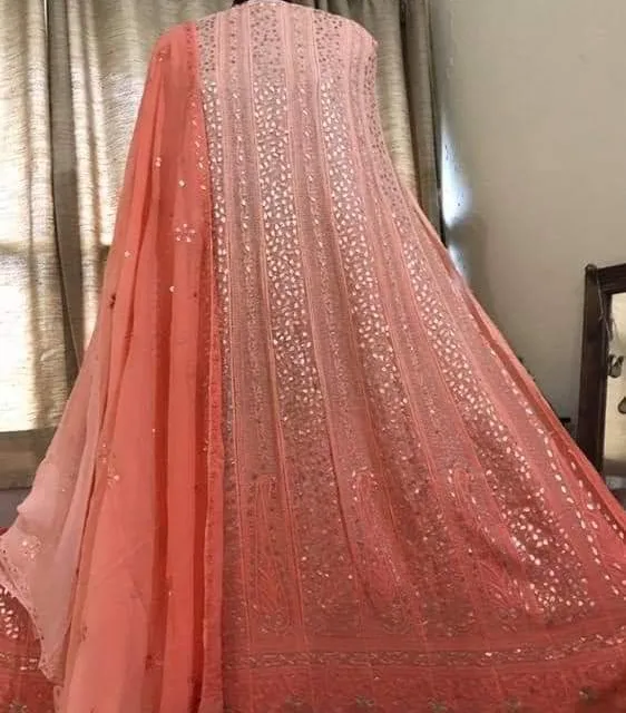 Pure Georgette lucknowi anarkali 18 kalis in all with 2.5 metres full lucknowi embroidery dupatta with all over bootis and beautifully designed borders ๐ธ๐บ๐ธ๐บ๐ธ๐บ.https://chat.whatsapp.com/Bje67ybgEMJE6p7Kl8u56j